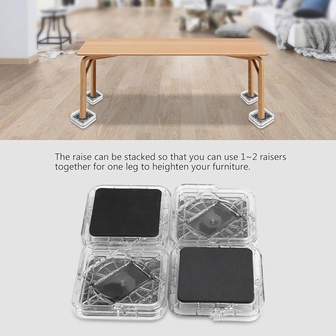 Stacking it together is easy, insert the top of one riser into the bottom of another riser, and they will securely nest together. As an amazon associate i earn from qualifying purchases. Richards wood made furniture risers are highly suitable for beds, when you need to add additional storage space under your furniture. Amount of elevation is adjustable within ranges indicated above. 5 out of 5 stars.