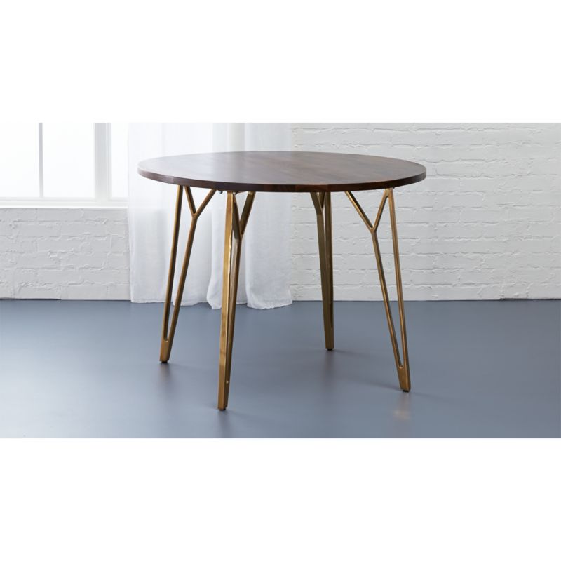 Stay in for dinner tonight. Calculate delivery to a different zip code. Shiny brass rods thread together acacia wood slats rich in hi/lo tones and active wood grain. This is for the table only. 6 customers have this item in their cart.